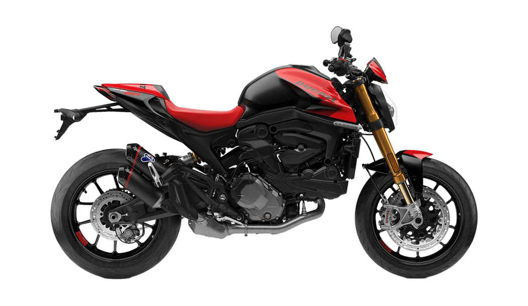 The livery, which incorporates the 2022 colors of the factory team's Desmosedici GP, reinforces the sporty nature of the new Monster SP.